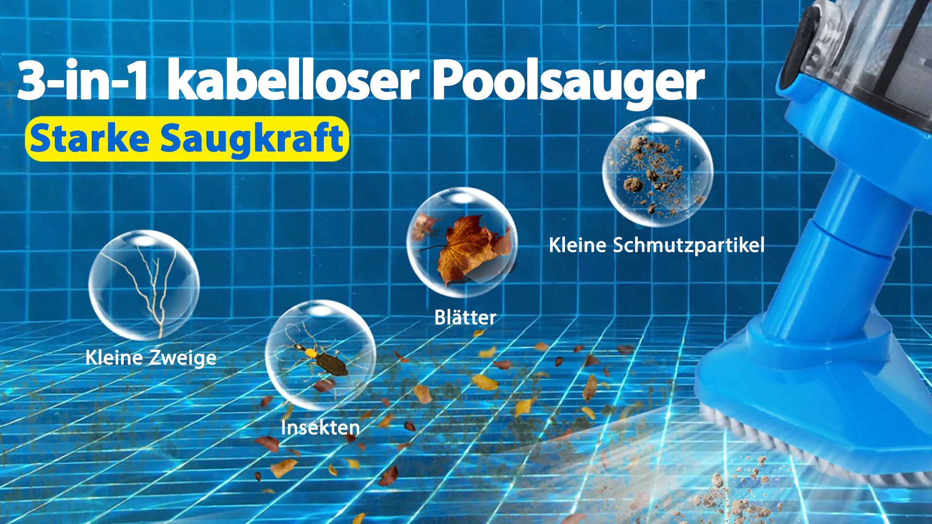 PoolNexa-PN30丨3-in-1 kabelloser wiederaufladbarer Poolsauger
