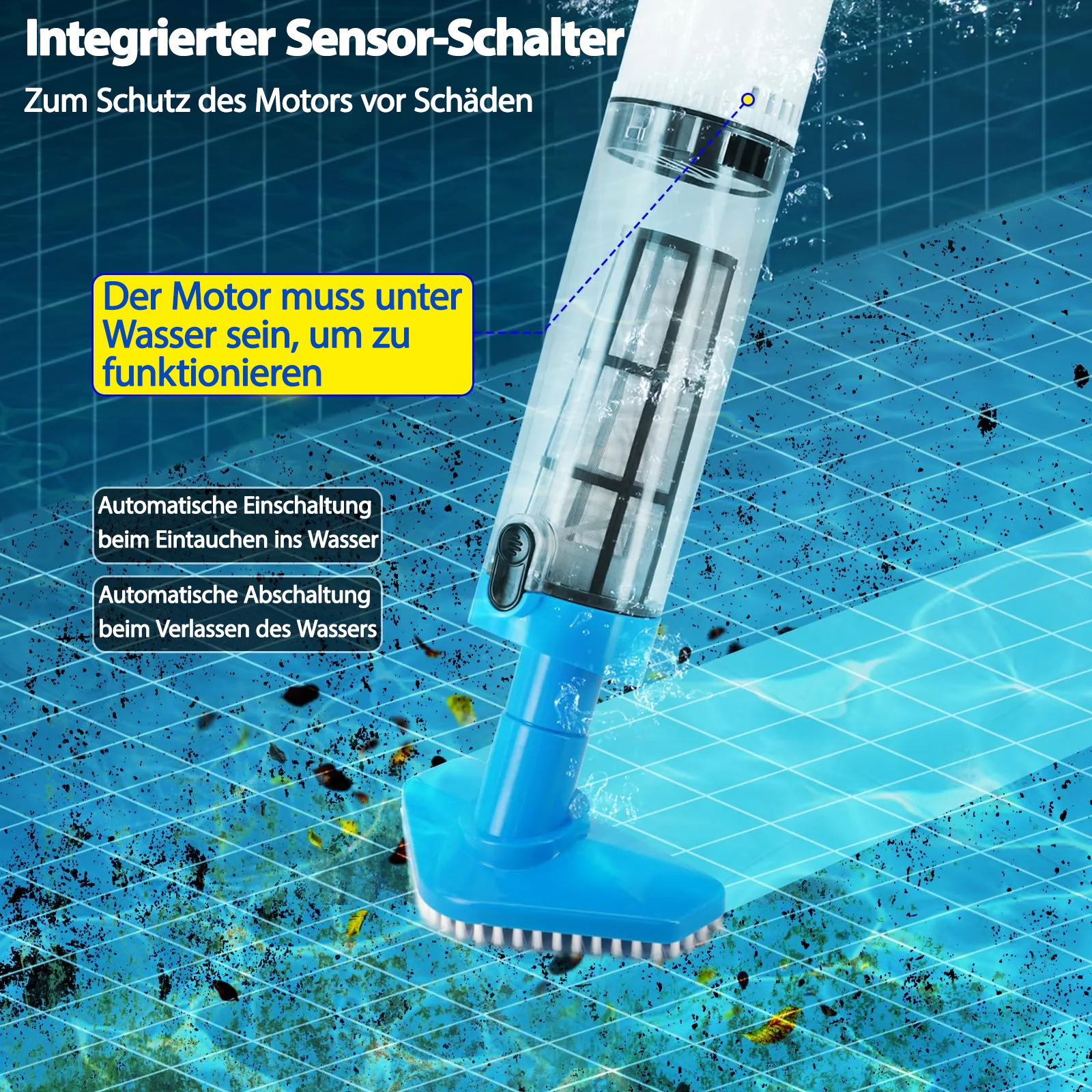 Integrierter Sensor-Schalter: Automatische Einschaltung beim Eintauchen; automatischer Stopp beim Anheben zum Schutz des Motors und zur Schonung des Akkus.